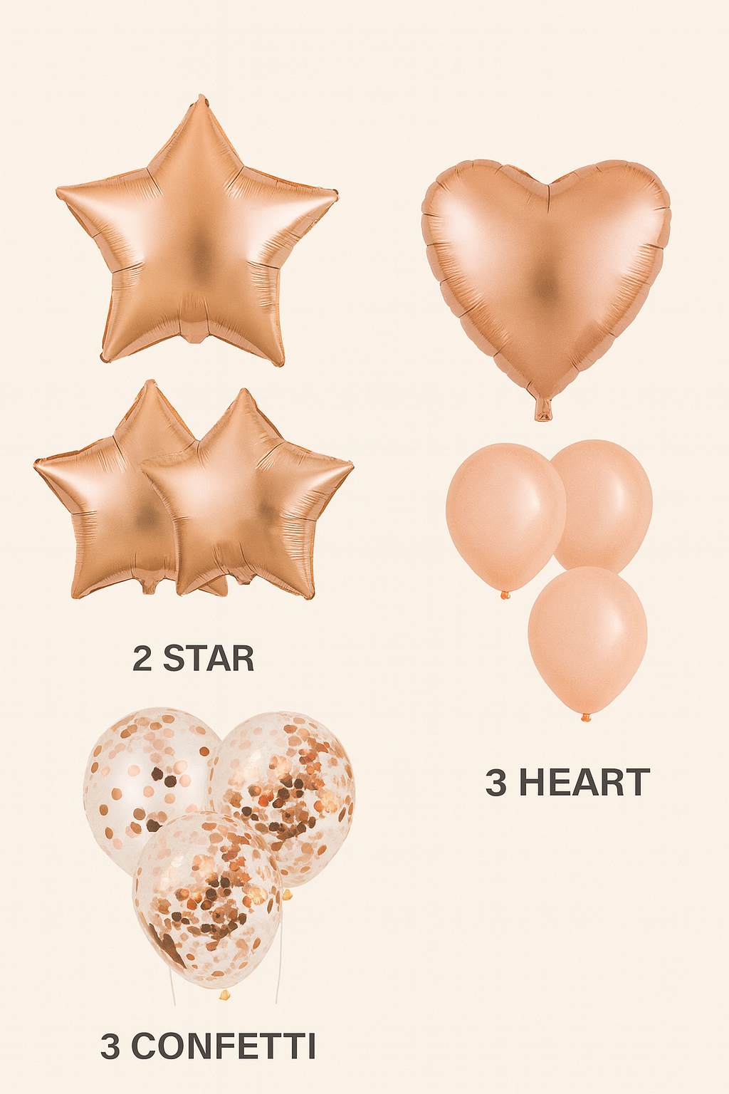 Bring elegance and joy to your celebrations with the Li Xing 14-Piece Rose Gold Balloon Set. Carefully curated to combine the glamour of metallic foil balloons with the charm of latex and confetti-filled designs, this set is perfect for creating an unforgettable party atmosphere.