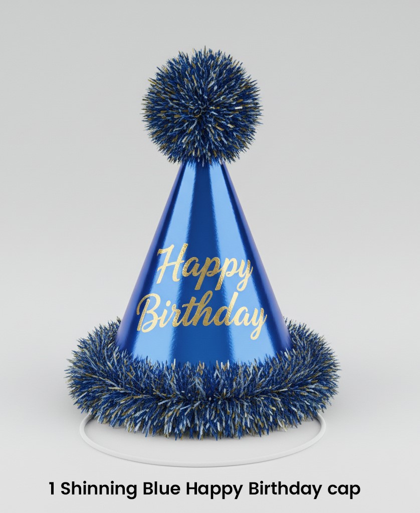 Make the birthday celebration extra festive with this brilliant Shimmering Blue “Happy Birthday” Party Hat. The hat is a classic cone shape covered in a high-gloss, metallic blue finish, perfect for adding a pop of vibrant color to any birthday—especially those with a blue, gold, or superhero theme. The hat is elegantly scripted with the words “Happy Birthday” in a contrasting shimmering gold font, ensuring the guest of honor feels central to the event.